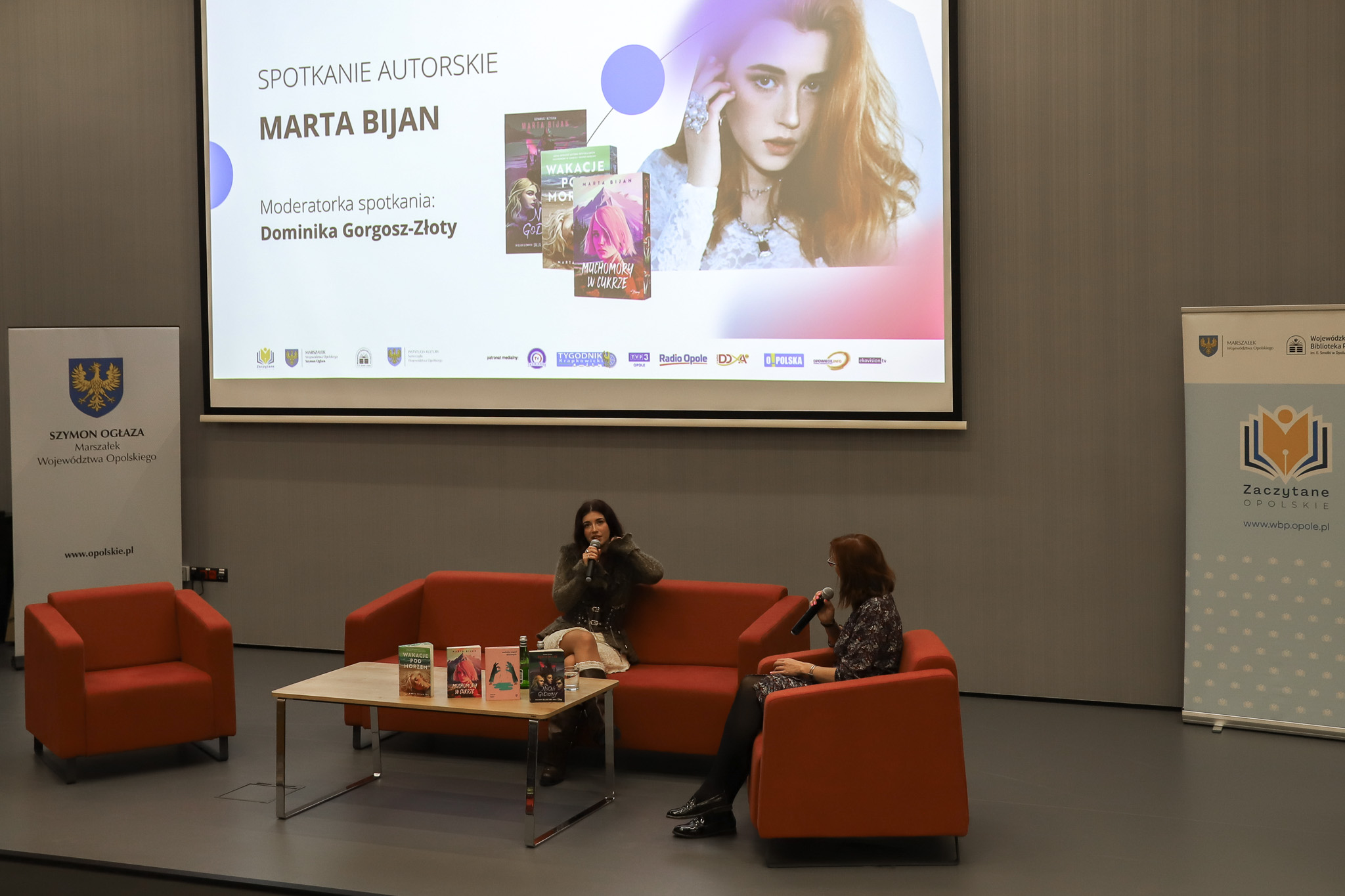 Spotkanie odbyło się w ramach akcji 9.edycji "Zaczytane Opolskie". „Zaczytane Opolskie” to projekt zainicjowany i finansowany przez Zarząd Województwa Opolskiego w osobie Marszałka Szymona Ogłazy oraz Wicemarszałka Zbigniewa Kubalańcy, przy udziale Departamentu Kultury i Dziedzictwa Regionalnego reprezentowanego przez dyrektorkę Agnieszkę Kamińską, a realizowany przez WBP w Opolu i biblioteki całego regionu.