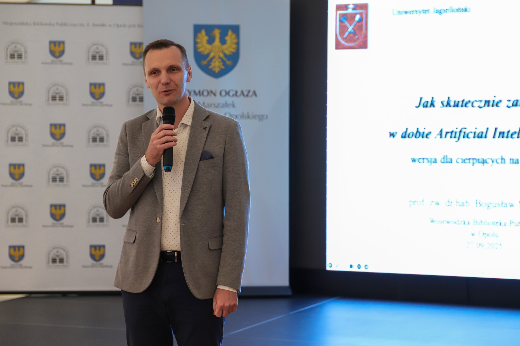 - Powitanie – dr hab. Adam Drosik, dyrektor Wojewódzkiej Biblioteki Publicznej im. E. Smołki w Opolu.