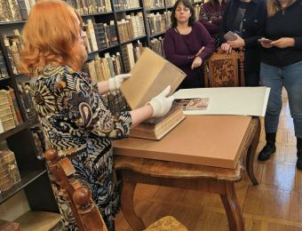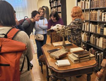 Dzień wcześniej goście odwiedzili Zamek w Rogowie Opolskim, gdzie mieli okazję zobaczyć bogate zbiory biblioteczne, w tym starodruki, rękopisy, akta, pamiętniki, grafiki oraz zabytkowe mapy. Zbiory zaprezentowała i przybliżyła ich historię Mirosława Koćwin, kierowniczka Oddziału Zbiorów Specjalnych i Zabytkowych.