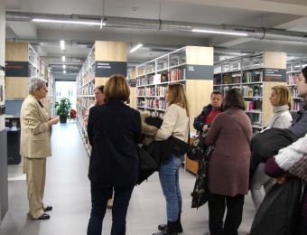 Pierwszym punktem programu była prezentacja Katarzyny Hermasz pt. „Biblioteka w działaniu – promocja i upowszechnianie czytelnictwa”. Następnie uczestnicy wizyty zwiedzili wystawę „Fotografia 50/75” Romana Hlawacza, oprowadzaną przez samego autora.