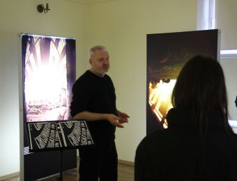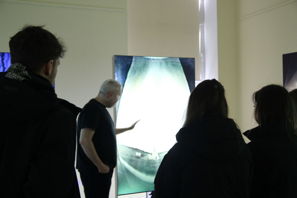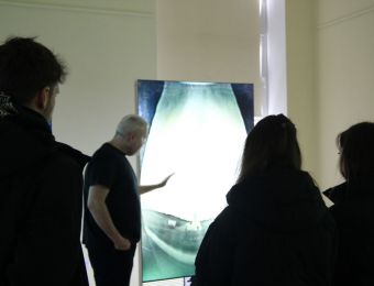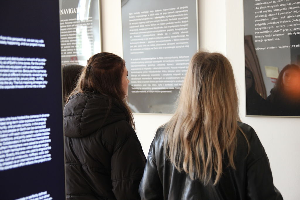 Dzisiaj (27.02.2026r.), przed swoim wyjazdem, dr Maciej Zapiór oprowadził grupę studentów po wystawie, dzieląc się swoją wiedzą i doświadczeniem. Podczas spotkania uczestnicy mieli okazję bliżej poznać technikę solarygrafii oraz proces powstawania prezentowanych prac, a także dowiedzieć się, jak obserwacja ruchu Słońca i światła w różnych częściach świata przekłada się na artystyczny zapis czasu. Spacer po ekspozycji stał się inspirującym doświadczeniem, łączącym naukę i sztukę w wyjątkowy, przystępny sposób.