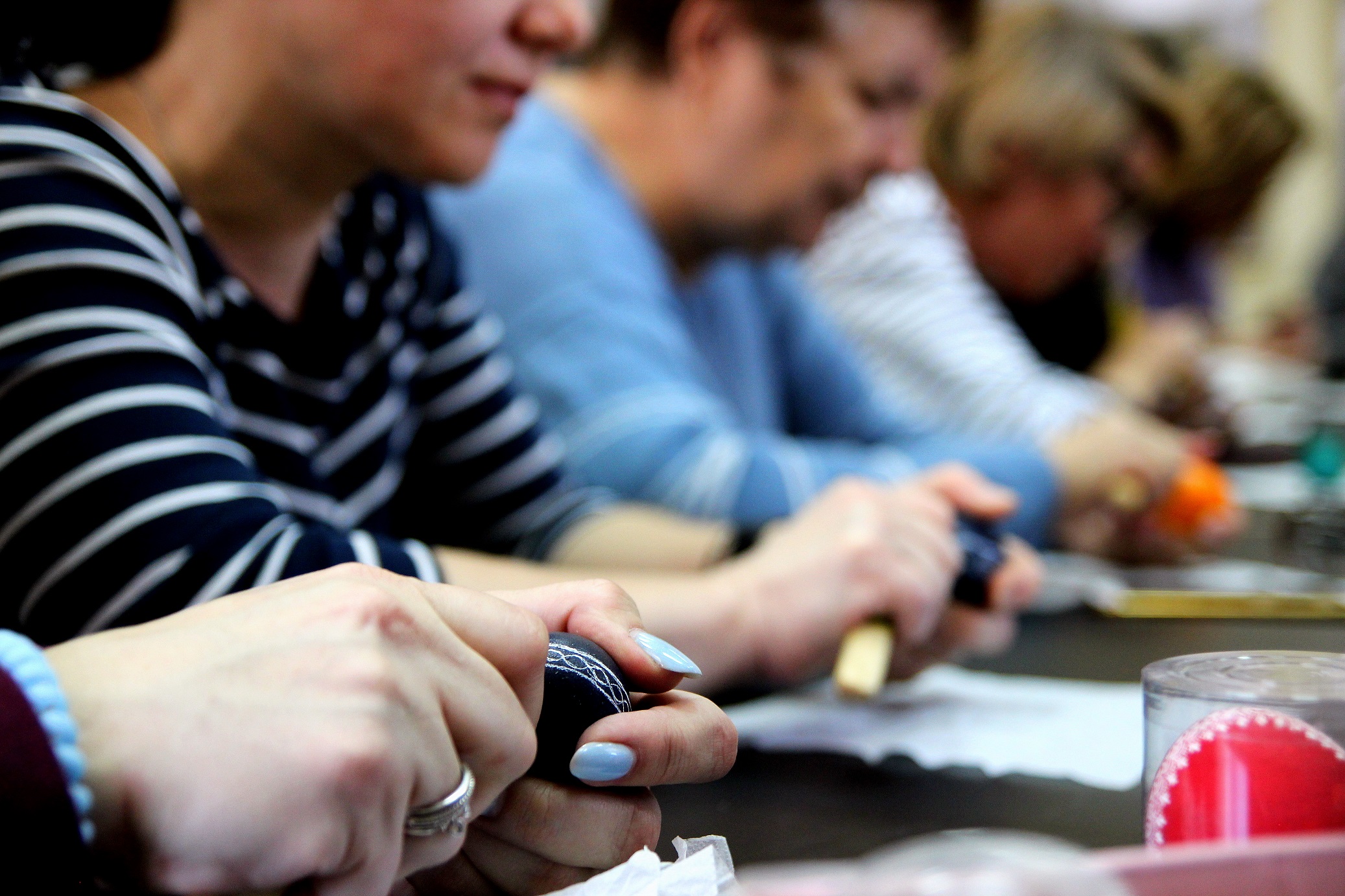 Warsztaty kroszonkarskie poprowadziła Małgorzata Mateja - wspaniał artystka, specjalizująca się w zdobieniu porcelany za pomocą stalówki i specjalnych farb ceramicznych. Tradycyjne wzory nanosi także m.in. na szklane bombki. Za kultywowaniem tradycji opolskich uhonorowana m.in. nagrodą Marszałka Województwa Opolskiego.