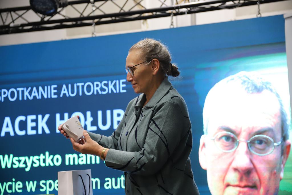 12 września odbyło się spotkanie z Jackiem Hołubem – byłym wieloletnim dziennikarzem „Gazety Wyborczej”, autorem książek Żeby umarło przede mną. Opowieści matek niepełnosprawnych dzieci, Niegrzeczne. Historie dzieci z ADHD, autyzmem i zespołem Aspergera, Beze mnie jesteś nikim. Przemoc w polskich domach, Wszystko mam bardziej. Życie w spektrum autyzmu oraz współautorem reporterskiej biografii dyrektora Radia Maryja Imperator. Sekrety ojca Rydzyka. Książka Beze mnie jesteś nikim została wyróżniona Kryształową Kartą Polskiego Reportażu i zajęła trzecie miejsce w plebiscycie Lubimyczytać.pl na najlepsze książki 2021 roku w kategorii literatura faktu. Natomiast Żeby umarło przede mną znalazła się w finale Nagrody „Newsweeka” im. Teresy Torańskiej, była nominowana do Kryształowej Karty Polskiego Reportażu, nagrody MediaTory w kategorii ObserwaTOR oraz w plebiscycie serwisu Lubimyczytać.pl na najlepsze książki 2018 roku. Na podstawie tych zbiorów reportaży powstały także spektakle w Teatrze Nowym w Łodzi oraz w Teatrze Dramatycznym w Koszalinie. Promocja książki Wszystko mam bardziej. Życie w spektrum autyzmu.