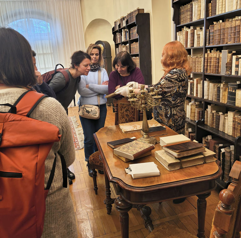 Dzień wcześniej goście odwiedzili Zamek w Rogowie Opolskim, gdzie mieli okazję zobaczyć bogate zbiory biblioteczne, w tym starodruki, rękopisy, akta, pamiętniki, grafiki oraz zabytkowe mapy. Zbiory zaprezentowała i przybliżyła ich historię Mirosława Koćwin, kierowniczka Oddziału Zbiorów Specjalnych i Zabytkowych.