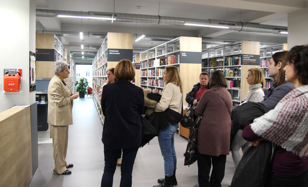 Pierwszym punktem programu była prezentacja Katarzyny Hermasz pt. „Biblioteka w działaniu – promocja i upowszechnianie czytelnictwa”. Następnie uczestnicy wizyty zwiedzili wystawę „Fotografia 50/75” Romana Hlawacza, oprowadzaną przez samego autora.