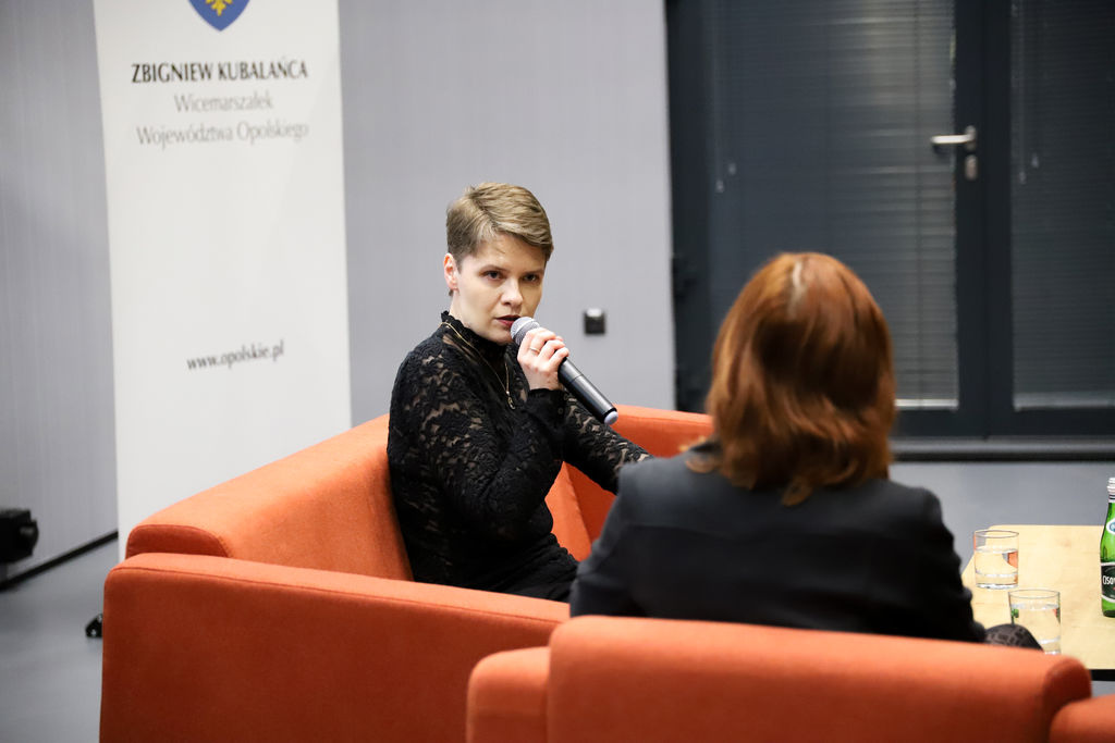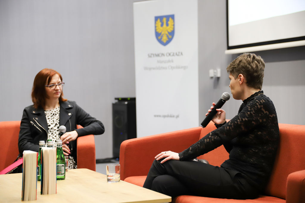 20 marca br. w Sali spotkań rozmawialiśmy o jej autobiograficznej prozie – bezkompromisowej, czułej i przenikliwej. O podwójnym doświadczeniu inności, o życiu poza narzuconymi ramami, o relacji, która nie daje się łatwo nazwać, a jednak buduje się dzień po dniu w wysiłku, uważności i miłości. Także o dryfowaniu i oswajaniu świata, który czasem wydaje się zbyt intensywny, zbyt barwny, zbyt wymagający.